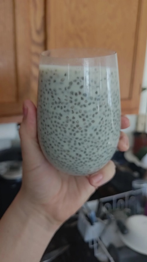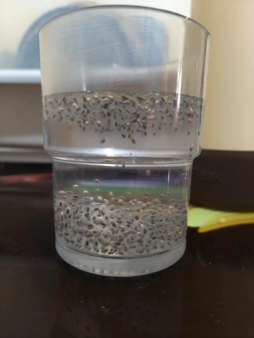 - Take a glass or a jar and add chia seeds to it.