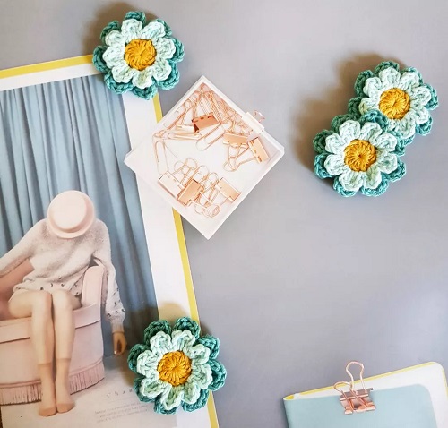 In love with the flowers, crochet this cute flower fridge magnet pattern by The Crochet Fix, which uses a few special stitches. The size of the flower can be adjusted by following the guide properly.