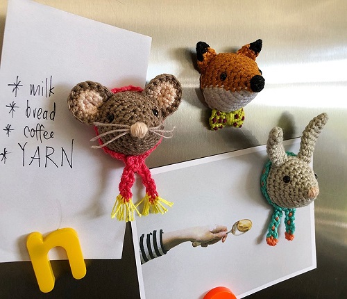 If you cannot find an idea for your next crochet project, try this animal fridge magnet crochet pattern by ponymctate.com to design these cute, mini creatures. The pattern uses the amigurumi method and a 3mm hook.