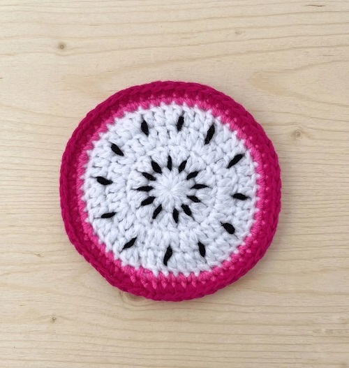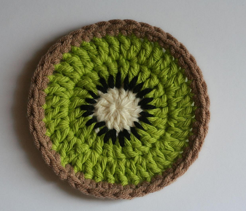 Flower coasters are beautiful, but fruit coasters are the current trend. Try one for your home with this Kiwi crochet coaster pattern by Tennie Belle, which looks exactly like a sliced kiwi.