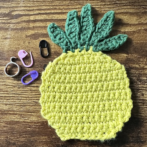 Place a huge pineapple in the centre of your table with this Pineapple crochet coaster pattern by Ravelry. Work properly on the leaves to give the fruit a beautiful look, and use a 4.5 m hook.