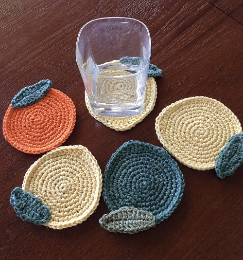 Lemons and summers have a great bond. Crochet these lemon coasters by The Caffeinated Snail with a tiny leaf detail. These coasters are perfect for the summer season and keep the table refreshed.
