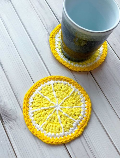 Crochet round coasters, but without a flower motif, with this easy lemon crochet coaster pattern by Lake View Cottage Kids. Add a zesty detail to your table using yarn and a 4.25 mm crochet hook.
