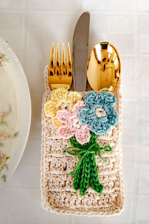 1. Pastel Posies Silverware Holder Crochet Pattern