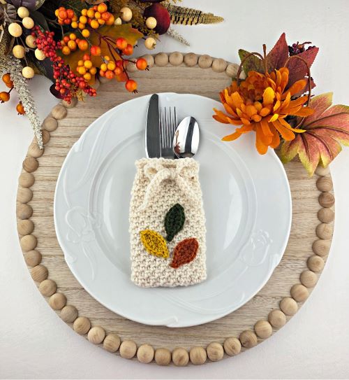 Try this crochet cutlery holder featuring the fall leaves-inspired design by A Crochet Simplicity to decorate the Easter table setting and bring it back to your table to welcome autumn.