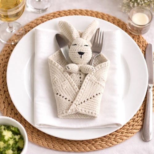 Ask bunnies to hold the cutlery for you with this cutlery holder crochet pattern from Etsy, which has a tiny grey bunny with long ears that keeps your spoons safe and clean. Add this cute detail to your table.