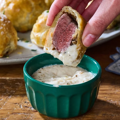Make the classic Beef Wellington easily and quickly with this recipe by The Pioneer Woman. These mini beef wellington bites are a two-bite appetizer with tender meat and flaky puff pastry.