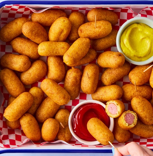 No need to run to an amusement park or anywhere else for a corn dog. Try these Mini Corn Dogs from Delish and serve them to yourself and to your friends whenever they come over for a stay or for a small gathering.