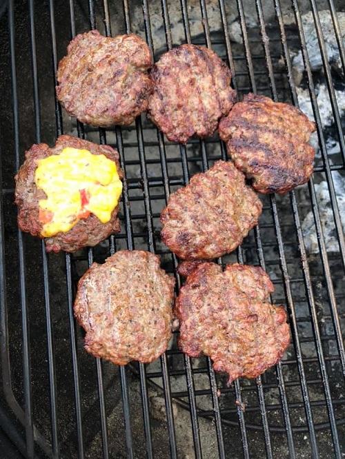 - Place the patties on the grill and close the lid. Cook for 3-4 minutes or until the patties have dark brown grilled marks.