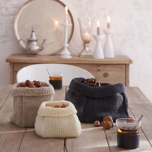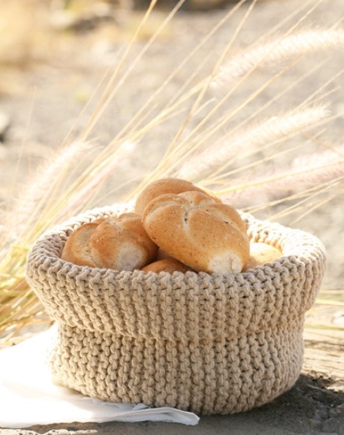 This knitted breadbasket by GarnStudio adds warmth to your kitchen table. It is sturdy enough for rolls or buns and soft enough to fold and store when not in use.