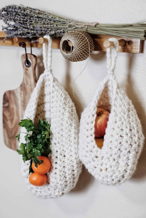 These simple kitchen organizer free crochet patterns for baskets and holders that help keep your kitchen tidy and nicely arranged every day.