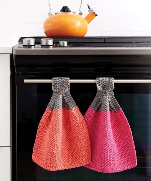 This knitted pattern by Yarnspirations uses multiple stitches and creates a loop to convert your regular kitchen towels into hanging ones. A perfect kitchen project to spend your evening stress-free.