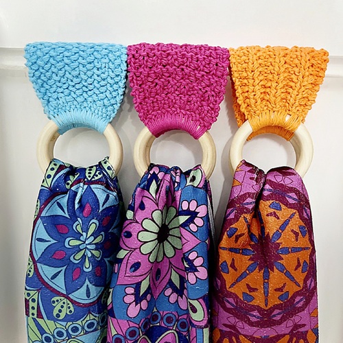 Towel toppers make it easy for you to organize them. Try this beginner-friendly hanging hand towel pattern by Wishing I Was Knitting At The Lake, by learning the required simple stitches.
