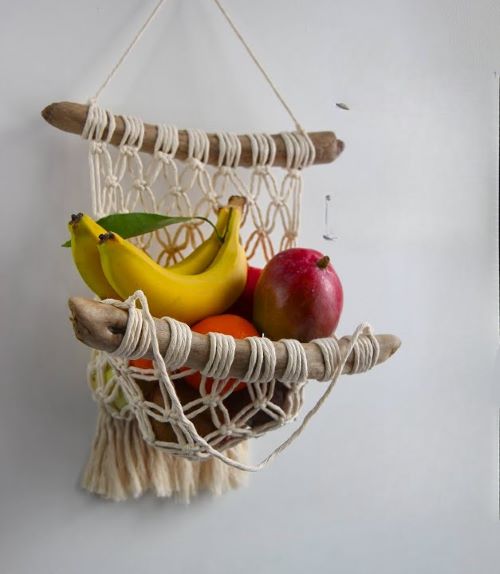 Worrying about your small kitchen? Stress no more and save some counter space with this macrame fruit hammock by Matching North, which uses some basic knots to bring this useful item into your kitchen.