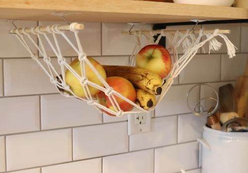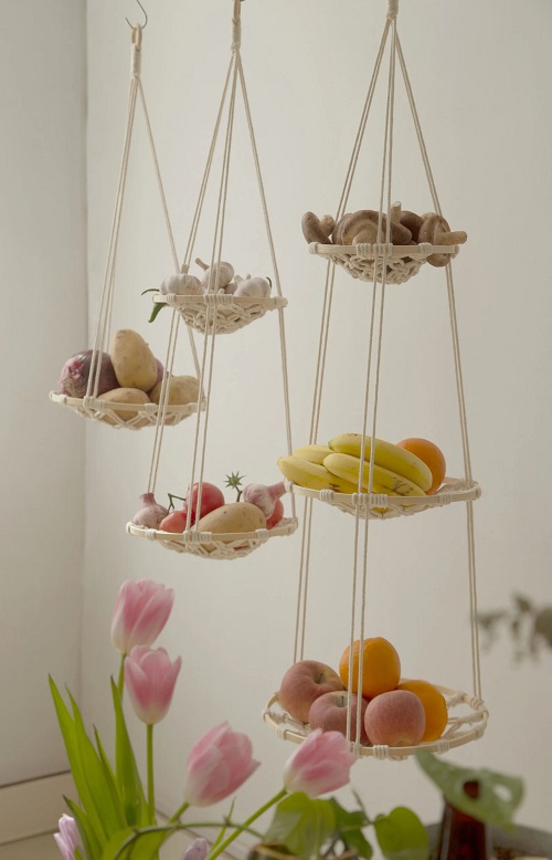 Don’t go simple while finding space in your little kitchen; instead, try this creative macrame fruit hammock pattern and hang it under your counters, and bid farewell to bulky fruit baskets.